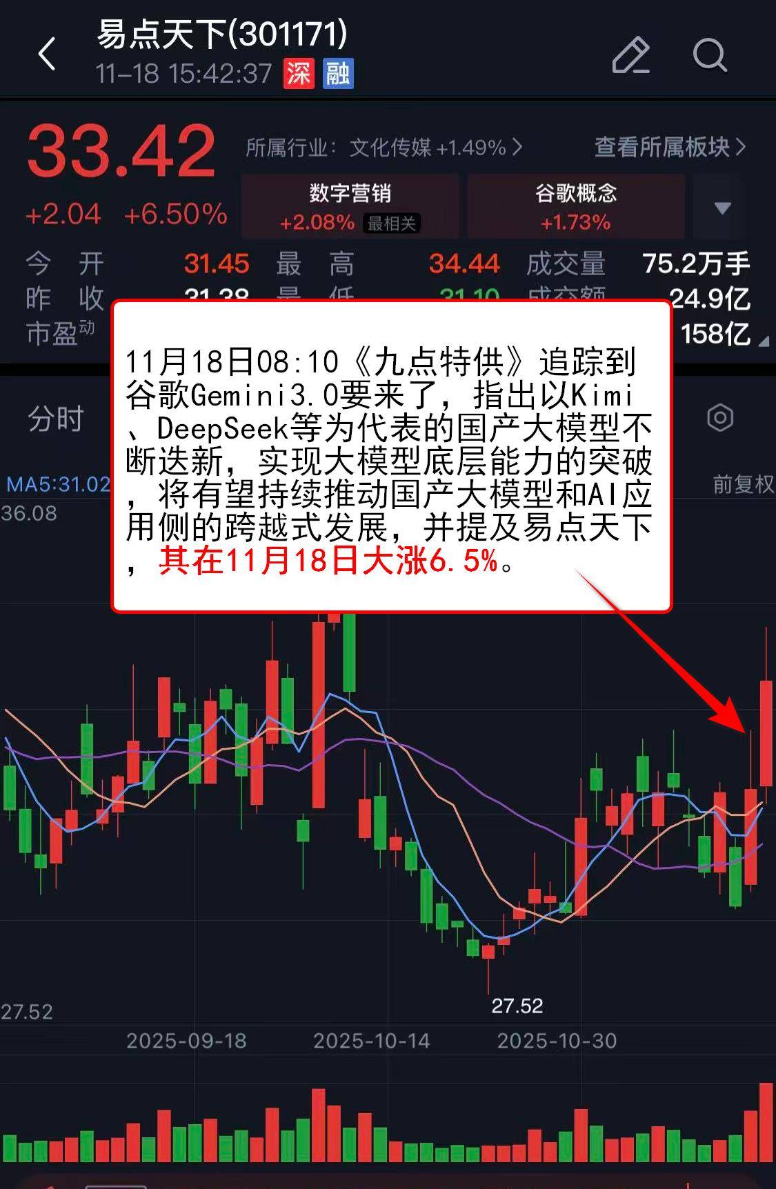11月18日08:10《九点特供》逃踪到谷歌Gemini3.0要来了,机构称大模子持续迭代鞭策AI使用加快落地,